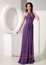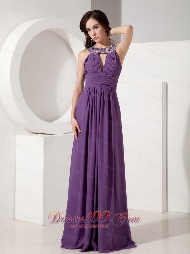 Dresses that create optical illusions are not only fun to wear, they're quite fashionable. This is an example of what we mean by optical illusions. The dress is made from a ligth chiffon and features a v-neck with a round halter top bodice. A wide ruched waistband curves a slim waistline and contures your figure well.The straight skirt falls in clean lines to the floor and pools beautifully at your feet. Silhouette: Empire
