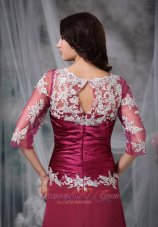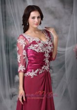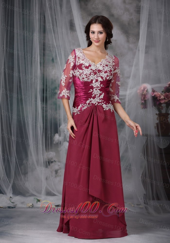 The dress accented with elegant appliques and pleated fabric throuhout the bodice. The appliques around the waistline define your raptured curve. The floor-length skirt falls in soft clean lines to the floor, creating a beautiful silhouette before extending into the steps . A hidden zip closure secures the dress in place and makes for easy off and on.