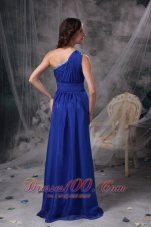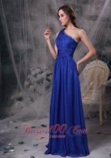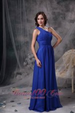 Empire silhouette with pleated top accents the feminine beauty. One-shoulder adorned with colorful rhinestones as well as floor length trim. Gathered by ruched texture at the waist, it contours your slim figure perfectly. Soft chiffon dress will flying with wind which is so romantic. Dark navy blue color also make the classic feeling. This is one of those clean and classic designs that never goes out of style.