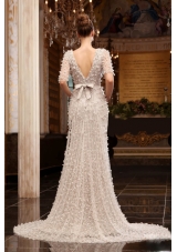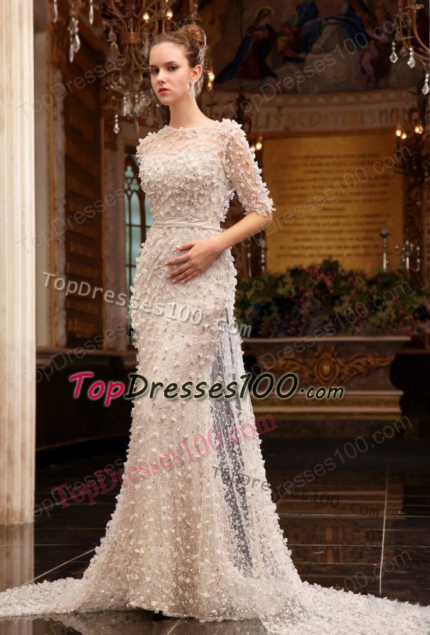 dramatic column champagne wedding dresses |