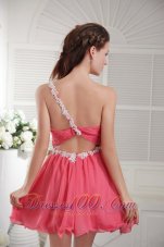 This short semi formal dress features a two tone design with pink dress and sliver applique flowers. A flattering short dress for homecoming, winter formals, or holiday parties featuring a one-shoulder neckline. The loose skirt is flowing with a curve hemline for a chic and youthful fit. The sweet dress has special back that make everyone love it.
