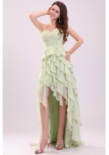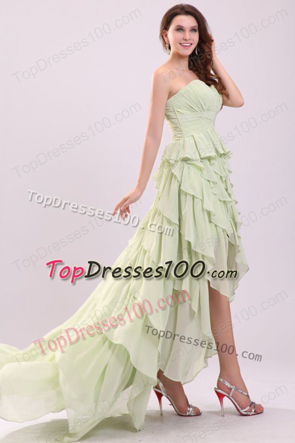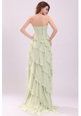 fashionable yellow green chiffon empire prom nightclub dress in autumn |