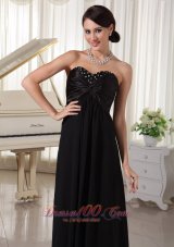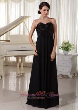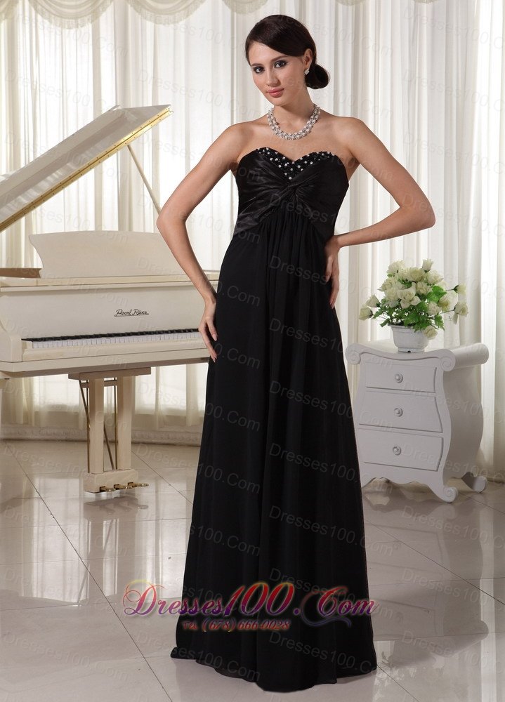Add a romantic vibe to your prom or formal! This black long dress features a sweetheart neckline, sporadic beads dotted on the bust part, ruched fabric forms a flattering crisscross at the bodice. The graceful skirt flowing freely from the empire waist to the floor shows your figure that makes you feel as if you are the fairy flying in the flowers. Show off your sophisticated side in this elegant dress!