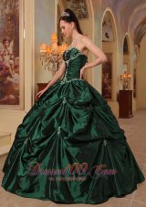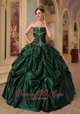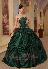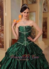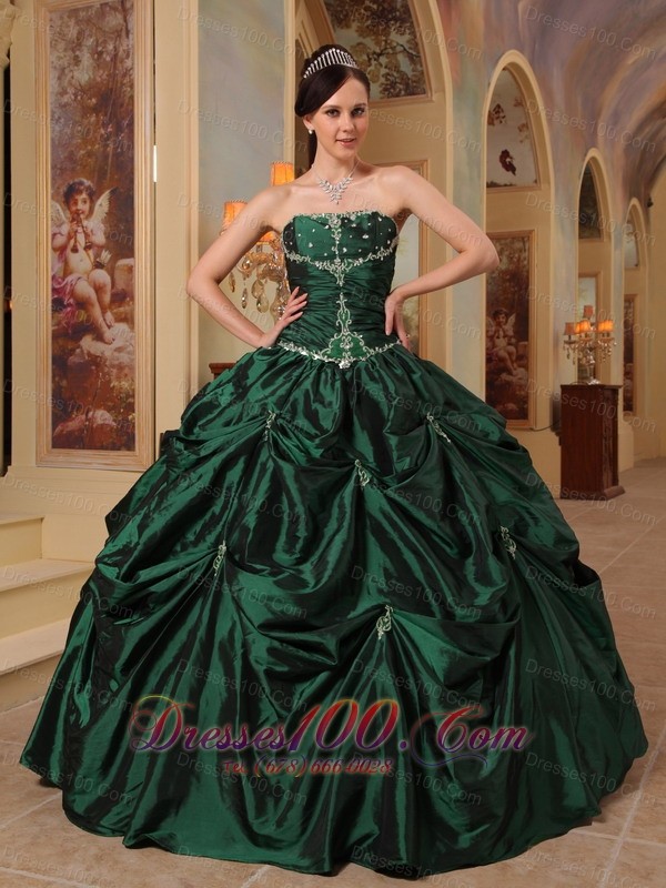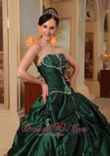 Romantic olive is the best way to show girl ?s shy beauty. Sexy strapless design does not lack of stability and sex yet elegance. Beads embellished and exquisite applique make this gorgeous quinceanera dress sophisticated and tasteful. Fitted bodice with ruched waist can outline your slim figure and charming curve. The A-line skirt is floor-length and is made from soft smooth fabric, which are embellished with pretty rhinestones on the naughty pick ups. A lace up corset style closure in the back secures the dress in place.