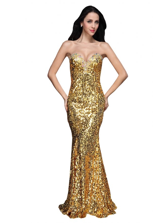 classic gold lady of the evening dresses in sequined fabric |
