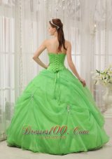 This blue quinceanera dress is simple but gorgeous. The fitted bodice with a sweetheart neckline and the embellished beadings makes the gown so elegant and exquisite that you will surely gain more attention. The bouffant skirt with many layers of stunning fabric and scattered beadwork makes the design the unique one. The corset closure in the back completes this wonderful dress.