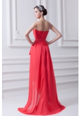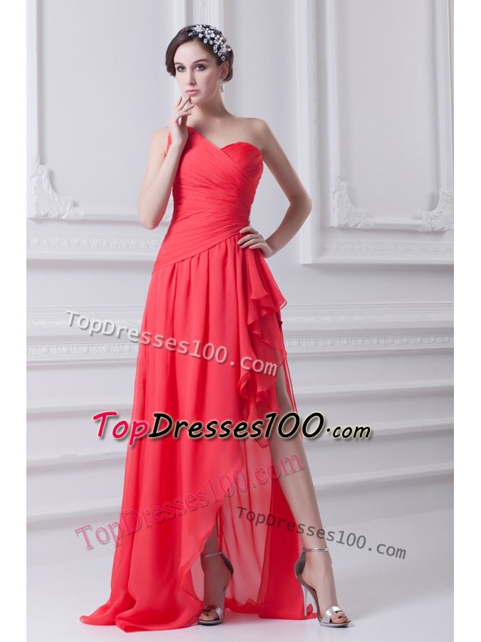 fashionable summer dressed coral red dress for prom with beading and ruching |