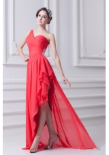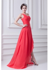 asymmetrical hemline one shoulder dresses with beading and ruching |
