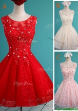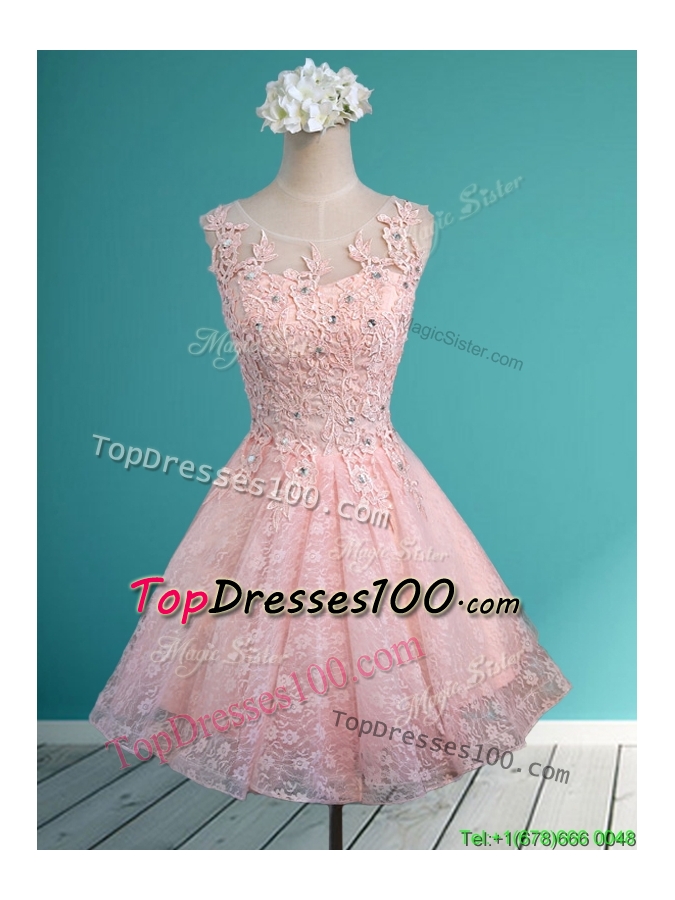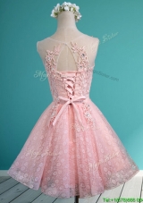 Popular Scoop Beading and Appliques Short Bridesmaid Dress in Baby Pink