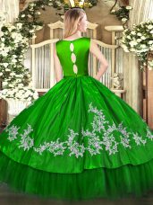 Suitable Satin and Tulle Scoop Sleeveless Clasp Handle Embroidery Quinceanera Dresses in Fuchsia