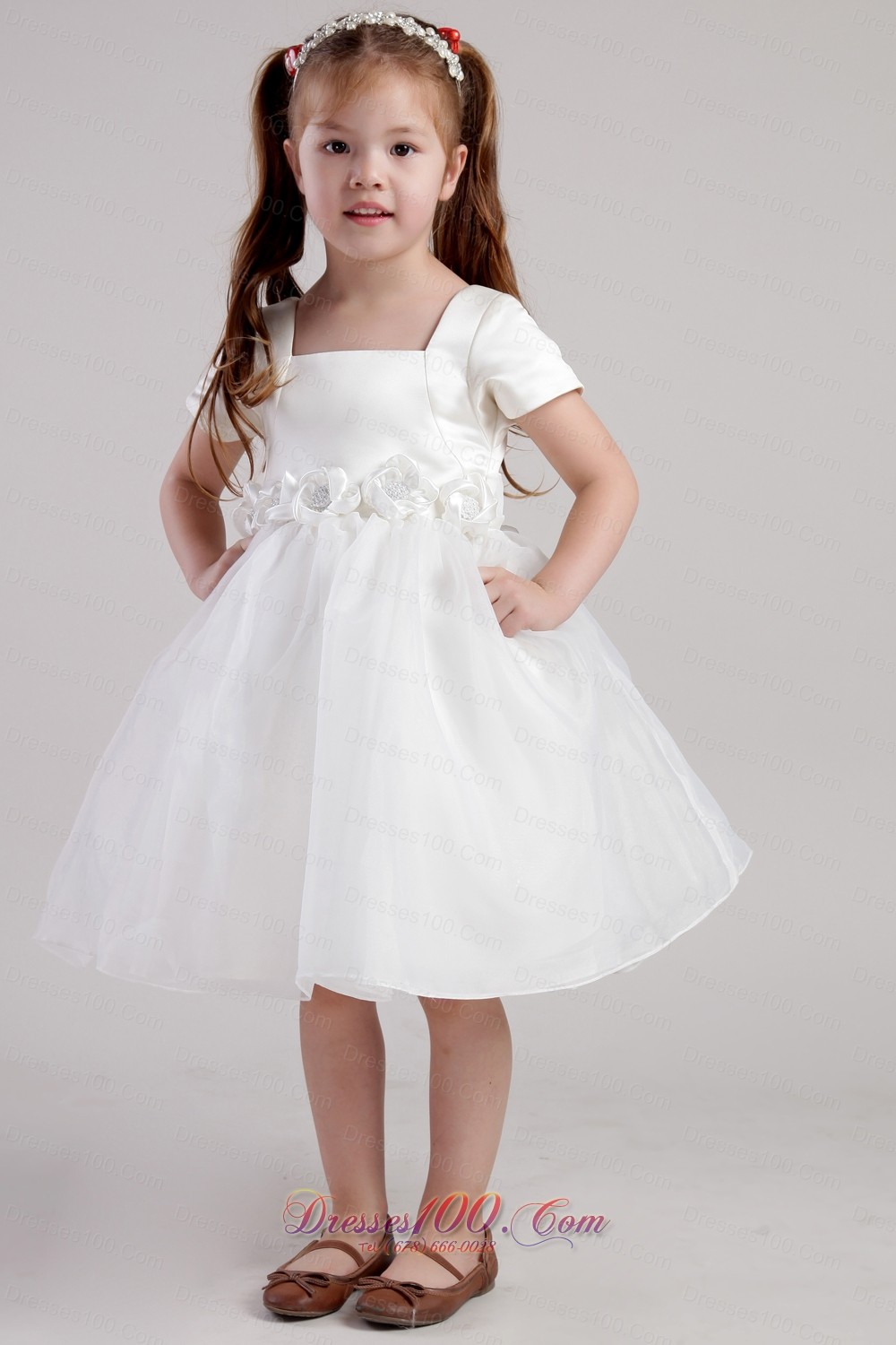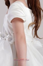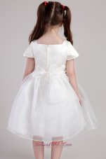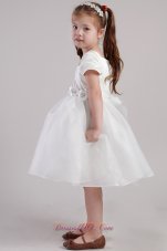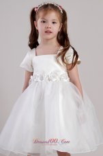 This sparkle organza flower girl dress features a tank bodice with short sleeves, and hand made flowers around the waist make the dress more noble and beautiful. The puffy organza on the skirt make the dress graceful and white color is holy. Your baby will look like a princess when she wear this gleamy dress. This cute dress is a great choice for your little baby.Zipper up back.