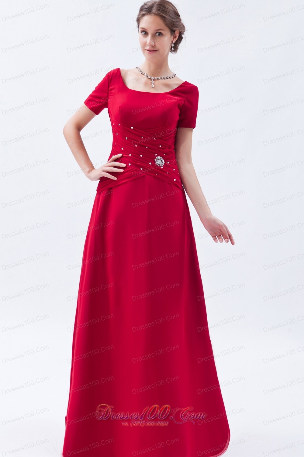 It is so gorgeous, isn't it? This red dress features an eye-catching design of short sleeves with a wide X-shape waistband, the sequined flower in left waist makes you more attractive. The simple floor-length dress can perfectly define your feminine figure and provide a slimmer look. It is so concise without any other needless decorations but express the feeling of elegance and nobleness. You will be the most graceful one on your big day in this amazing dress.