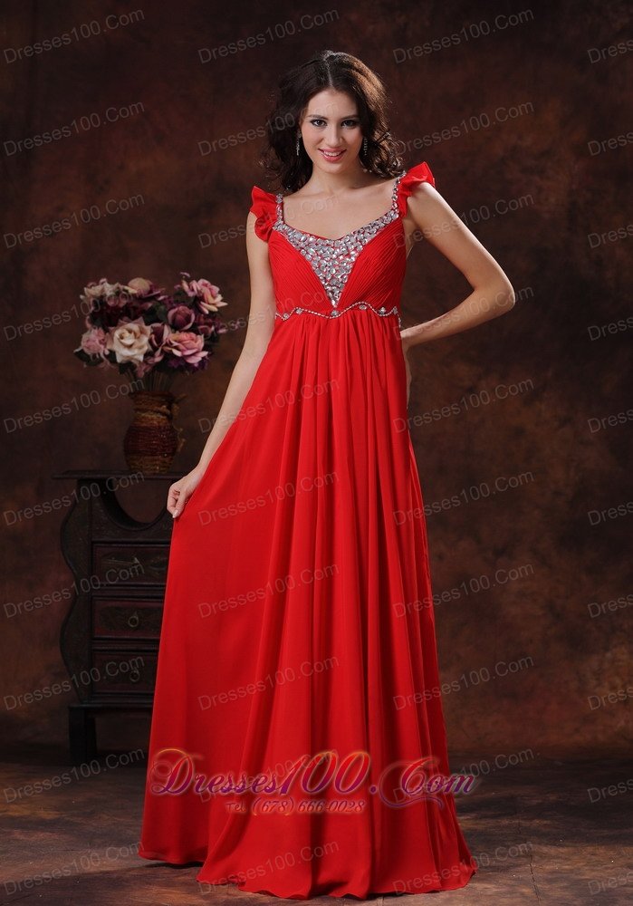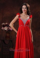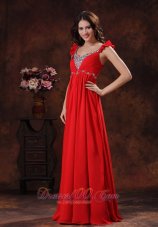 Presenting your curves in this red chiffon prom dress. Intricate shining beading adorns the sweetheart bodice. The beaded shoulder straps and low open back design add your charming and beauty. Slimming ruched chiffon with flowy floor length skirt. The delicate ruche around the bust accents the wave decoration on the waist. Stunning in the spotlight or on the dance floor.