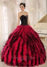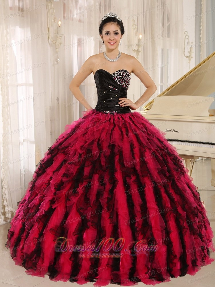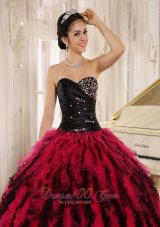 2013 beaded and ruffled sweetheart for black and hot pink quinceanera dress |