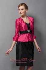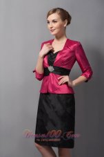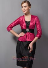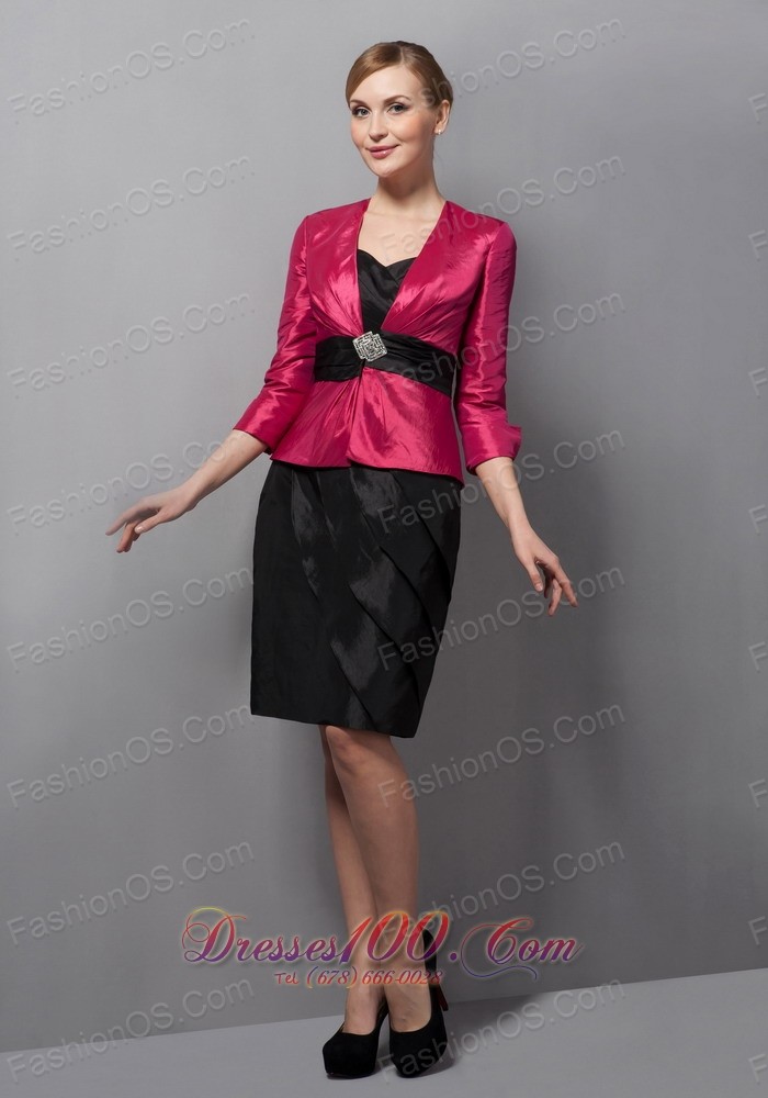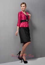 The connection of red and black color always catches many eyes around. It boasts yourself a sense of confidence and sophistication. This wonderful dress features two 3/4 length sleeves with the coat outsite cutting a V-neck at the front. A broad waistband together with a brooch embellishes the coat, giving the whole dress a completing look. Layers of fabric inclined the knee-length skirt, the scale shape highlights the dress and make it more elegant. Everything of this dress shows your elegance and modesty.