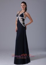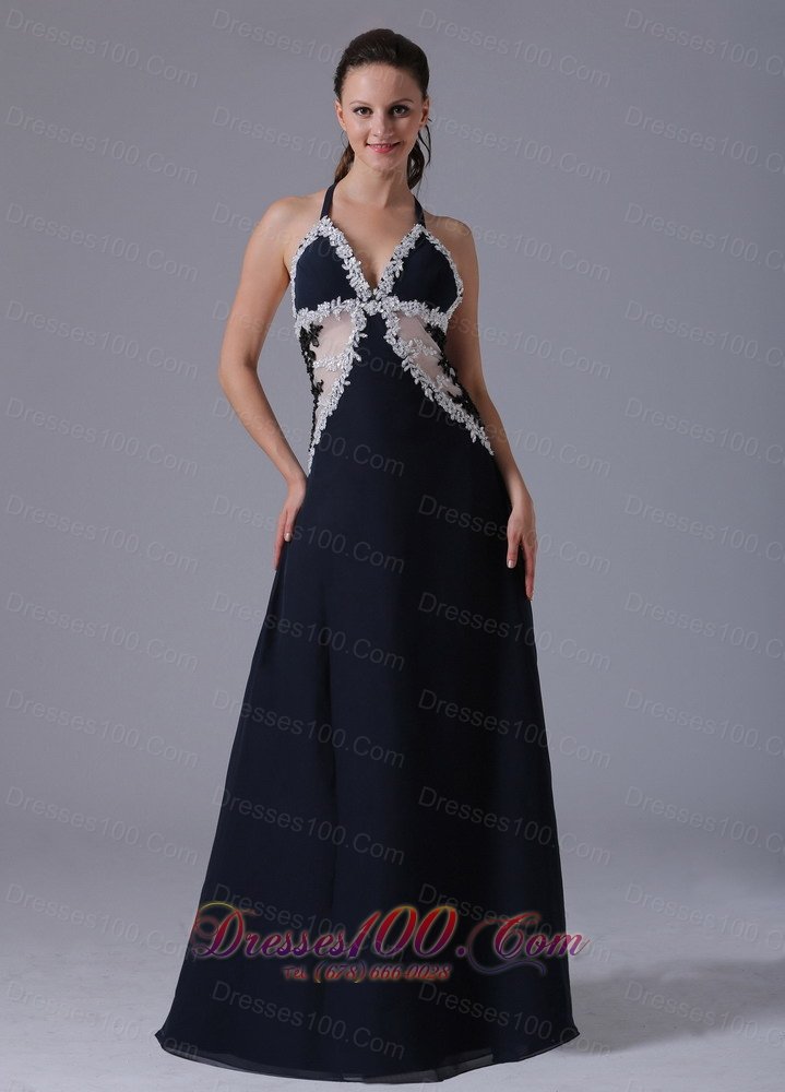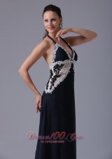 halter navy blue prom dress |