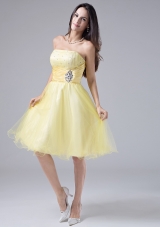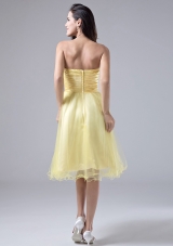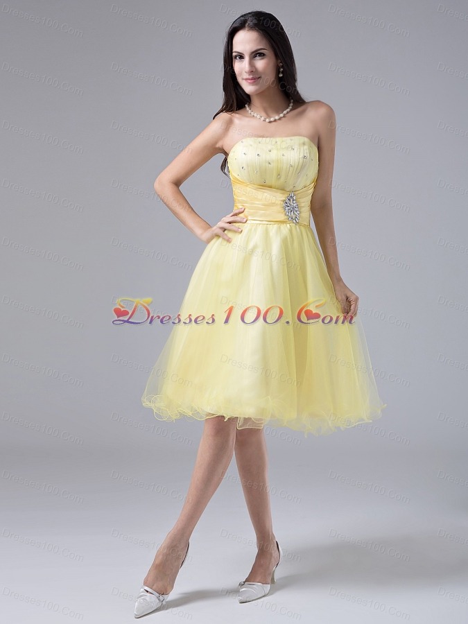 Be a sweet princess at your 2013 proms. This elegant evening gown featuring a strapless neckline bodice with delicate ruching and shinning beading that give you a wonderful look. The waistband is decorated with a beaded brooch, highlighting the whole look of the dress. The a-line skirt is made of layers of organza and flatters mose figures. A hidden zipper up back completes the look.