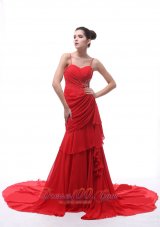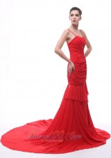 Long, flowing dresses is a great choice for any body style. They look nice, they feel great and are always in style. This one features straps with sweetheart neckline on a ruched bodice. The ruching extends till to the mermaid skirt. A hidden zip closure on the side of the dress secures it in place and makes for easy off and on.