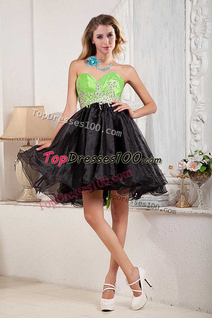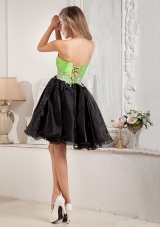 This two-toned dress is a perfecct choice to show your beauty on any occasions. The slim-lined bodice with a sweetheart neckline is adorned with exquisite appliques and beadings, while the mini-length skirt is pure with no redundant to contour your slim figure. The dress completes with a lace up closure.
