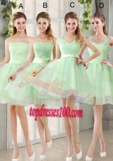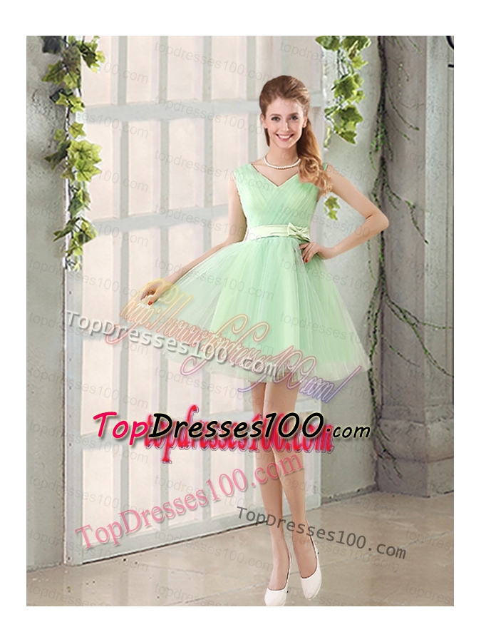 apple green bridesmaid dresses with mini length, traditional bridesmaid dresses for 2015 with belt |