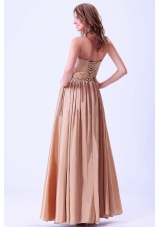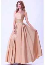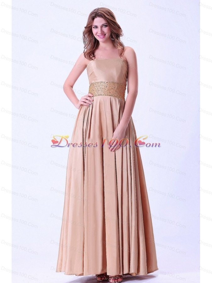 If you are looking for a high end dress without the high end price tag, this is definitely one you should consider. The champagne prom dress features a modest straight neckline and beaded waist which is simple yet very elegant. A lace up corset style closure in the back secures the dress in place. You will like your choice if you get the dress.