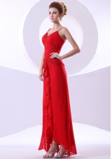 Add a romantic vibe to your prom or formal in this red prom dress! It featurs a sweetheart straps bodice. The criss-cross pleating has been placed thoughtfully on the bodice, which will increase more confidence in our product. The ankle-length skirt is adorned with lovely ruffles that add a dramatic effect. A hidden zipper makes for easy off and on and secures the dress in place.