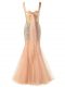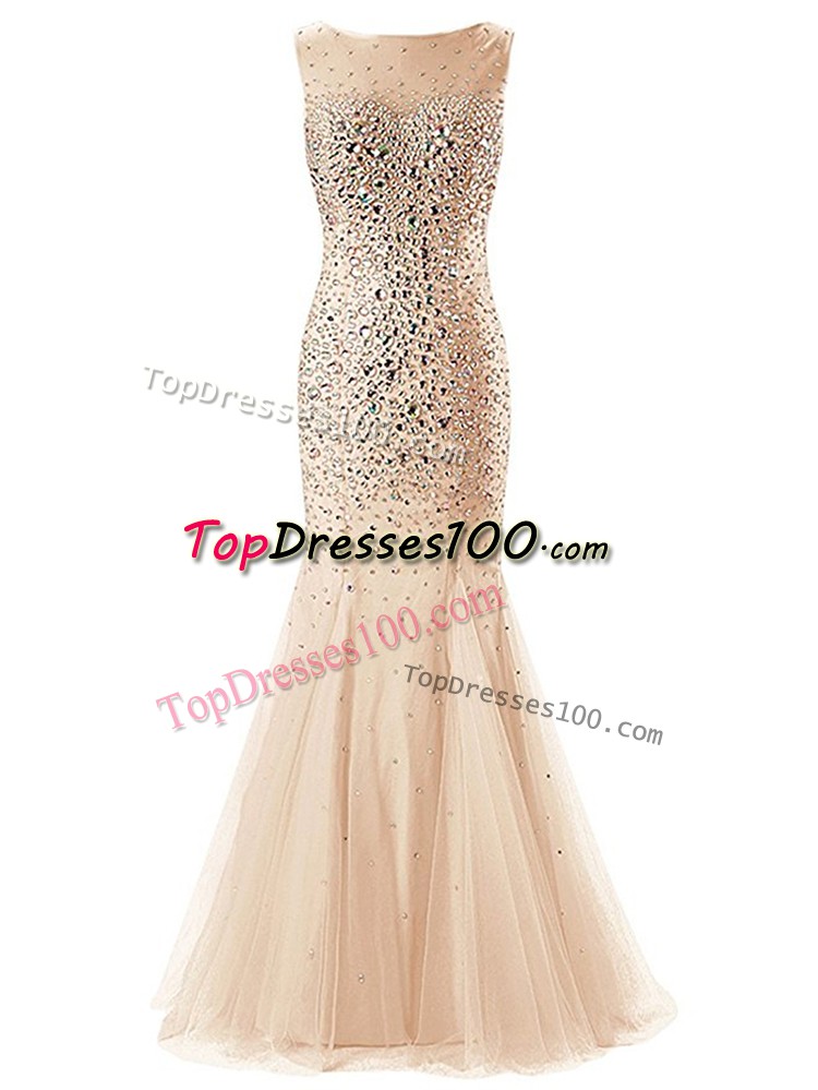 Best Selling Champagne Tulle Zipper Prom Gown Sleeveless Floor Length Beading