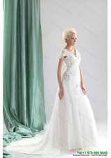 white v neck brautkleider with court train |