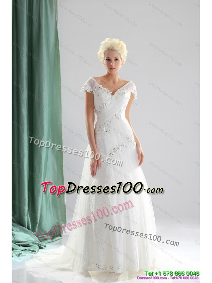 2016 a line v neck wedding dresses |