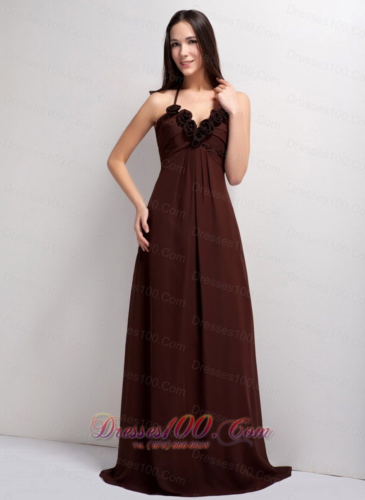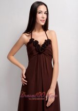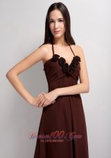 This dress features a V-neck neckline hemed by the handmade flowers which will definitely catch others' eyes, while the spaghetti strap in halter style gives you a touch of modesty. The ruched fabric for the bust area will flatter your body perfectly. And you will walk freely in the flowy skirt. A zipper up back finishes the gorgeous design.