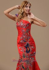 A sheath is a slim dress with refined ruching that hugs curves and outlines the silhouette of your body. This sheath style dress is especially beautiful and graceful on tall, thin figures. This one features one shoulder strap and ruched bodice. The print on the fabric likes the feathers of peacocks. The skirt falls to the floor in rippling wave appearance. The low open back show off your sexy. You will be shining under the spotlight in this green prom dress!