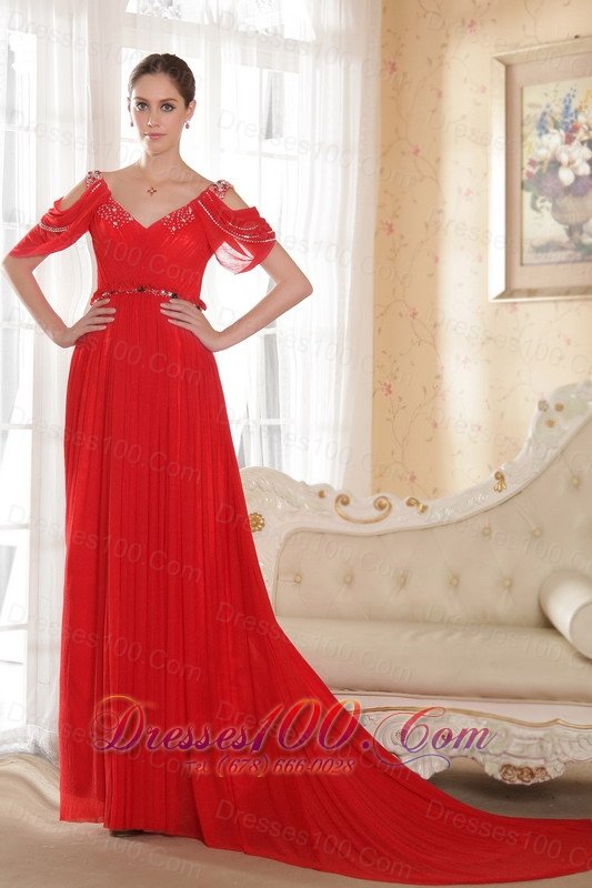 chapel train chiffon beading celebrity dresses |