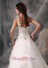 one shoulder floral wedding gowns |