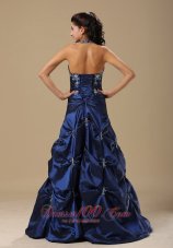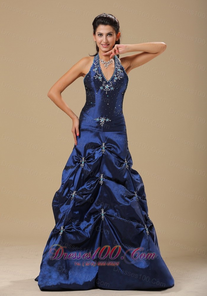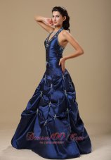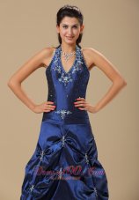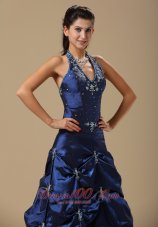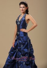 Picture-perfect elegance abounds on this utterly magnificent dress! Its artfully beaded sweetheart bust area and ruffles on the bodice also perfectly textured for a true fairytale look. The skirt sweeps boldly to the floor in a lustrous and exciting way. Chic pickups bring even more glamour to the table. The lower portion of this dress shimmers with sparking embellishments. With the traditional corset and a halter on the neck, you will be the most special one in any prom!