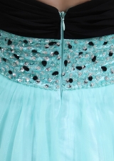 fashionable summer dressed aqua blue dress for prom with beading and ruching |