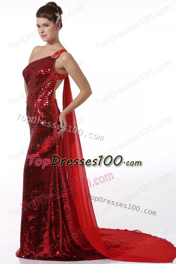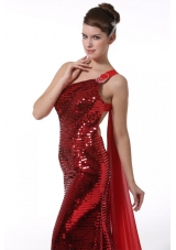 jazzy one shoulder seuqined fabric dress for prom queen |