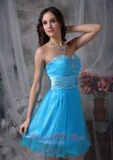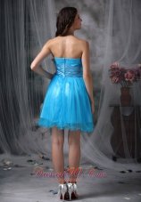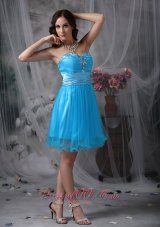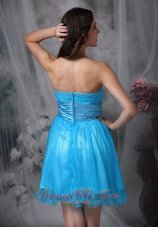 A fit short dress featuring a strapless beaded neckline with delicate ruched waist band to expose your wonderful curves. The dress has a touch of beading at the bust. The organza overlay flows when you dance freely. The zipper up back hold the dress in place.