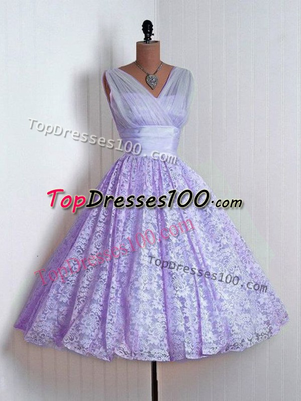 Delicate Mini Length A-line Sleeveless Lavender Quinceanera Court Dresses Lace Up