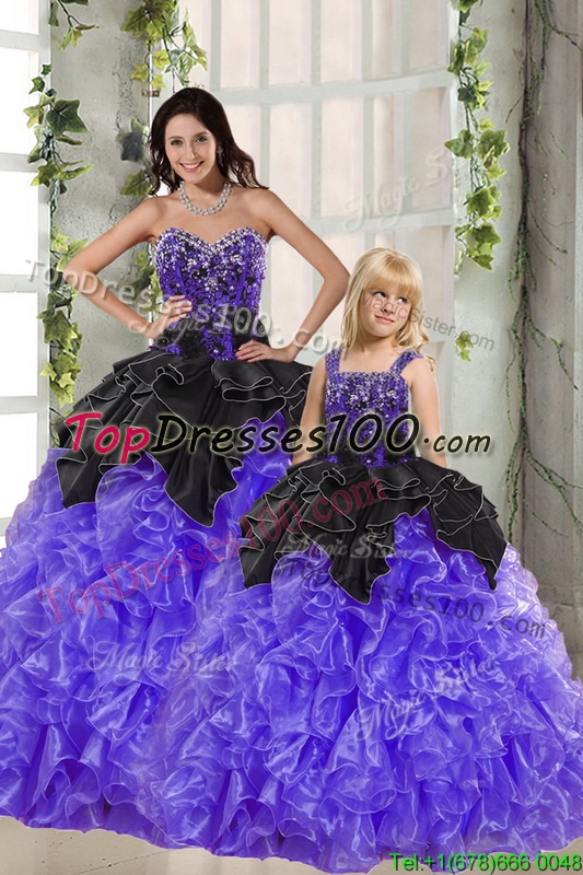 Home >  Quinceanera Dresses >  Princesita with Quinceanera Dresses > Deluxe Floor Length Ball Gowns Sleeveless Black And Purple Quinceanera Gown Lace Up