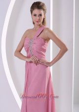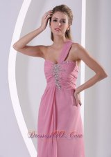 This gorgeous prom dress will put you to mind of a traditional southern belle! This one features one shoulder strap wraped to show your skin without being too revealing on the ruched bodice adorned with floral beaded appliques. A long-length skirt with two tiers of flowing chiffon that lets you be a fair like beauty to dance the night away in style. A hidden zipper makes for easy off and on and secures the dress in place. You will be stunning in the dance floor in this prom dress!