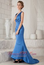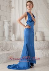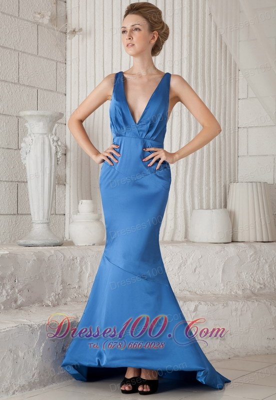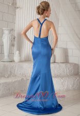 Halter top neck is always the fashion. This blue dress just in this rank. it features a deep V-neckline and the back is just with a single beaded strap, which highlights your smooth skin. Besides, the mermaid style wrap you figure and shows your perfect curve. You can't miss it.