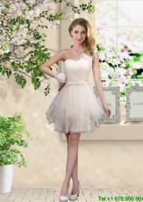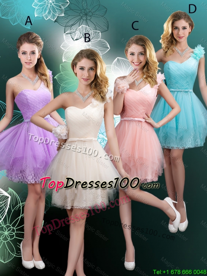 one shoulder bridesmaid dresses with belt and hand made flowers |