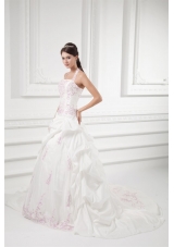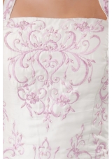 unique a-line white zipper-up senior prom with embroidery and pick-ups |