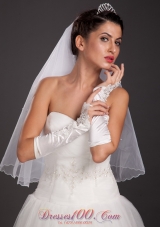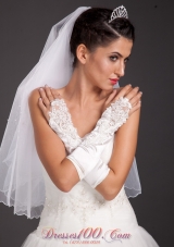 white appliques bridal gloves |