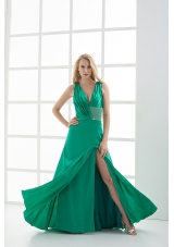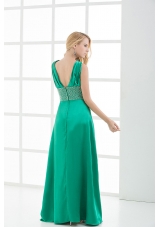 fashionable green taffeta empire prom nightclub dress in autumn |