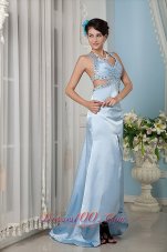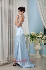 This sexy evening dress with special design will be your best choice. You will catch everyone's eyeball on your day! Ruched bust with exquisite beadwork on your midriff make you be the unique one. You will also love the sexy open back with cross over straps. The taffeta skirt with a slit on the front and a sweep train on your backe make this dress outstanding. You can not miss it!