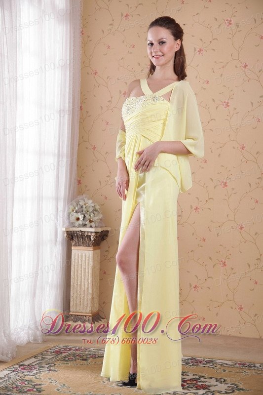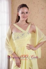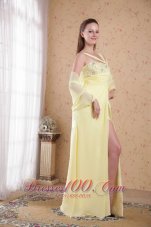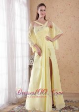 This dress is so special, it would even make angel jealous!It features a lovely strap bodice with sweetheart neckline and beautiful shawls. The yellow dress with cut out side and slit style, made from many sheer layers of beautiful satin. It elegant when you walk, creating a wonderful silhouette.Add a romantic vibe to your 2012 prom or formal when you entrance to prom 2012.