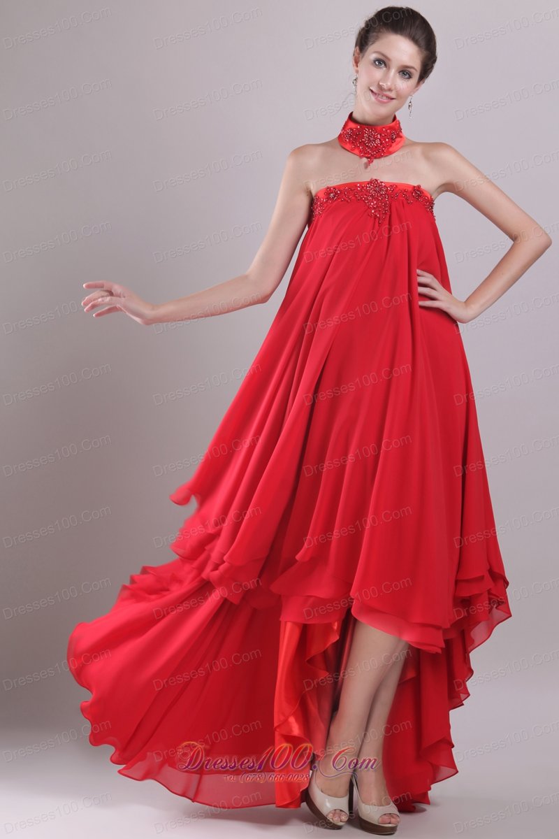 Do you want to be the spotlight in the party? If so, that dress is definitely to be your best choice. This dress features a collar of the cheongsam, which is so elegant. Encrusted by the floral embelishment, more delicate is added to the collar. Adorned by the appliques on the bust area, the bodice will show your perfect curve for sure. The spacious room on the skirt will flatter most figures, while the high-low style will make you to be a fashionable lady. The bow on the back adds a touch of romance to the dress and finishes the gorgeous design.