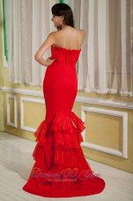 Body-conscious and beautiful, this strapless affairs dress couldn't be classier! It features a gorgeous sweetheart neckline which has the amazing organza fabric that is sure to make the most of your figure. Layers of surprising ruffles which are also made of organza fabric brightens up the floor legth skirt. The chic chiffon mermaid style has a brush train and a zipper on the back.