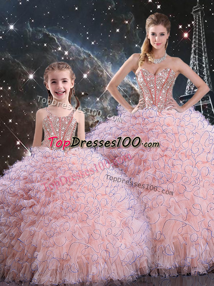 Home >  Quinceanera Dresses >  Princesita with Quinceanera Dresses > Flare Sweetheart Sleeveless Organza 15 Quinceanera Dress Beading and Ruffles Lace Up